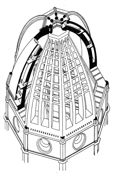 Где такой черствый и завистливый человек, который не похвалил бы зодчего Пиппо [Брунеллески], имея перед глазами столь великое сооружение, вздымающееся к небесам, настолько обширное, что оно осеняет собой все тосканские народы...? Леон Баттиста Альберти о куполе Санта-Мария дель Фьоре |