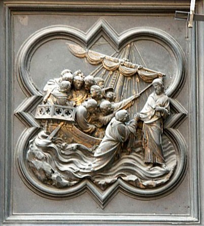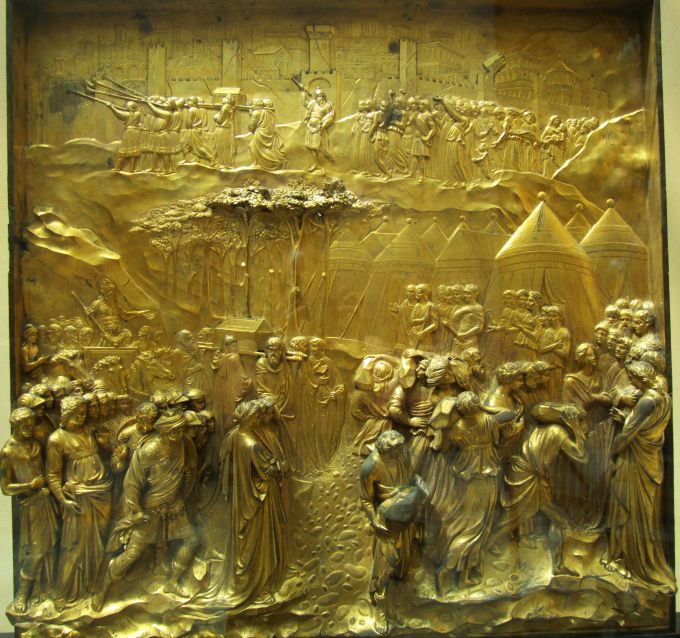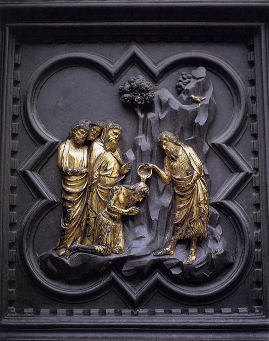 С 1401 по 1424 гг. (то есть, более 20-ти лет) Гиберти работал над дверями северного входа в баптистерий. Двери были
