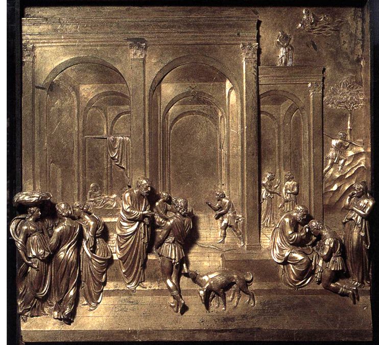 В 1401 году, в возрасте 21 года, Лоренцо Гиберти принял участие в конкурсе рельефов бронзовых