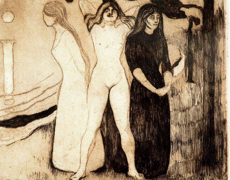 Особенно ярко образная система символизма нашла свое выражение в цикле произведений Мунка под общим названием «Фриз жизни». Сам художник говорил, что это поэма о жизни, любви и смерти, над которой он работал в течение тридцати лет. Он задумал ее как «цикл декоративной живописи, как полотно ансамбля жизни. В этих картинах за извилистой линией берега – всегда волнующееся море и под кронами деревьев развертывается своя жизнь с ее причудами, все ее вариации, ее радости и печали». В этот цикл вошли работы, объединенные тематикой любви, женственности, страха, одиночества, тревоги, отчаяния, угасания и смерти. Многие из этих картин Мунк в течение жизни создавал в нескольких вариантах, снова и снова возвращаясь к одной и той же теме.