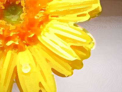 Цветовые переходы превращаются в участки вялого цвета. Результат напоминает шелкографию.
